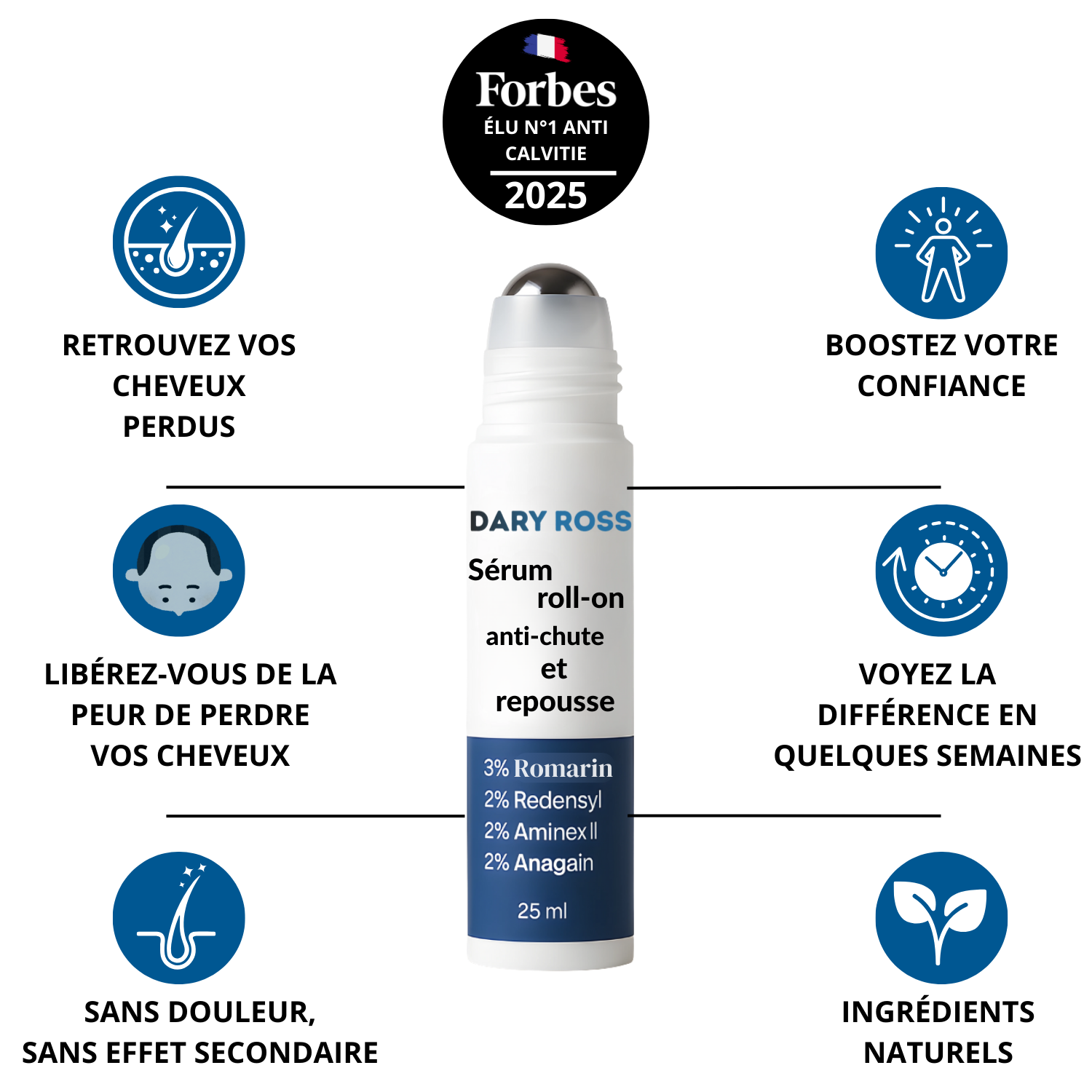 Je ne voulais pas m'embêter avec le Minoxidil. Dary Ross me semblait plus sûr, et il fonctionnait. Pas gras, pas d'odeur bizarre, et il s'intègre parfaitement à ma routine quotidienne. Incroyable, c'est tellement simple.